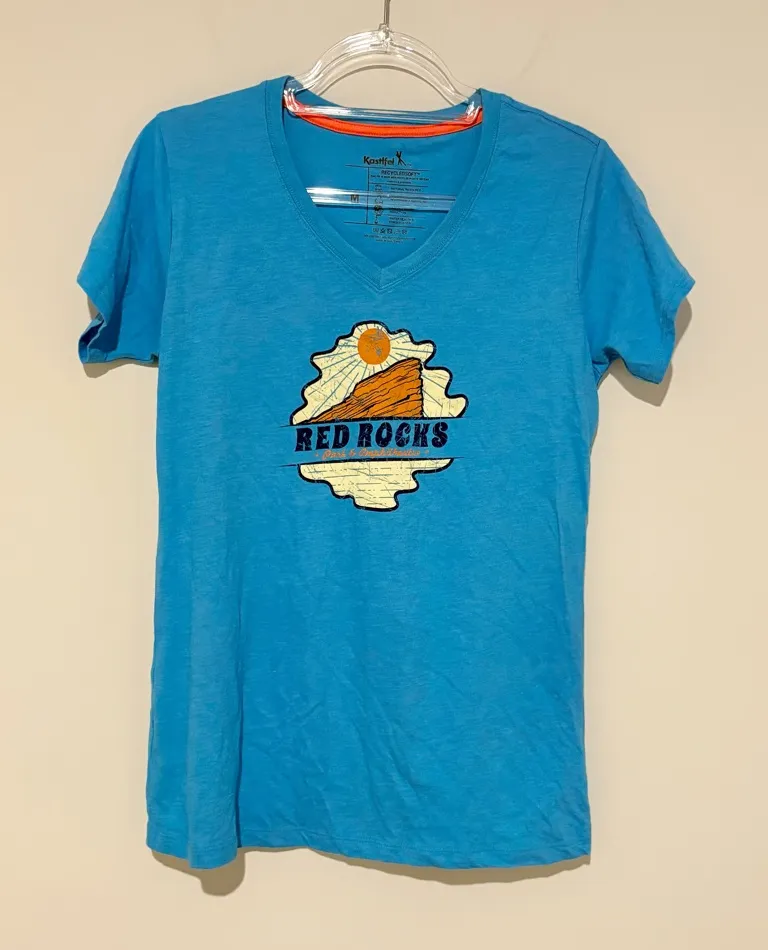 Kastlfel Red Rocks park amphitheater Colorado v neck t shirt blue size medium. Good condition Measu... Show more