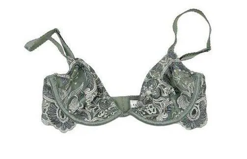 Kat The Label Underwire Floral Embroidery Bra in Sage Green & White Size XS - $29 - From Dressed in