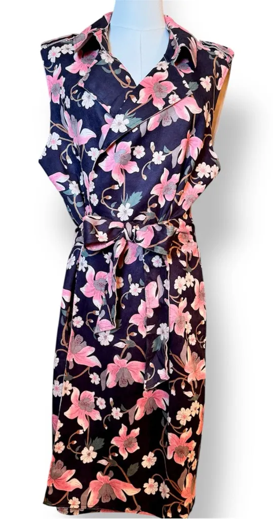Chic floral midi wrap dress with a sleeveless design. Features a stylish pink and black pattern. Ideal for versatile wear. Made of amazingly soft suede-like material that almost feels like velvet! Extremely well made & super flattering!! Size: Large— see pics for #’s. Sizing is flexible due to the wrap style! NWOT