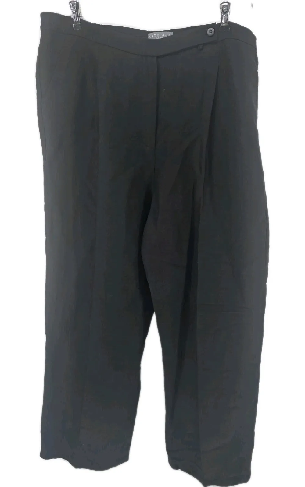 No flaws, gently used, great pre-owned condition! Smoke free, cat friendly home - clothing not stored where she has access. Wash to wear is always recommended. Fast shipping 1-2 business days! Measurements (approx) Waist 38" Inseam 27" Front Rise 12" Leg Opening 10" Keywords: Kate Hill pants, black dress pants, high waist pants, pleated pants, career pants, work pants, trousers, black trousers, women's pants, business casual, office attire