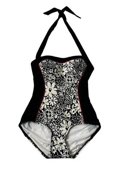 66-27 Kate Spade Black/Ivory Floral Lightly Padded One Piece Swimsuit Women's Size Small Preowned S... Show more