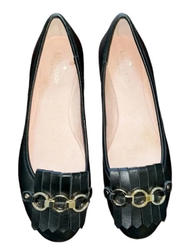 Kate Spade Black Leather Flat Slip on Shoes. Reflect minor wear please review photos.