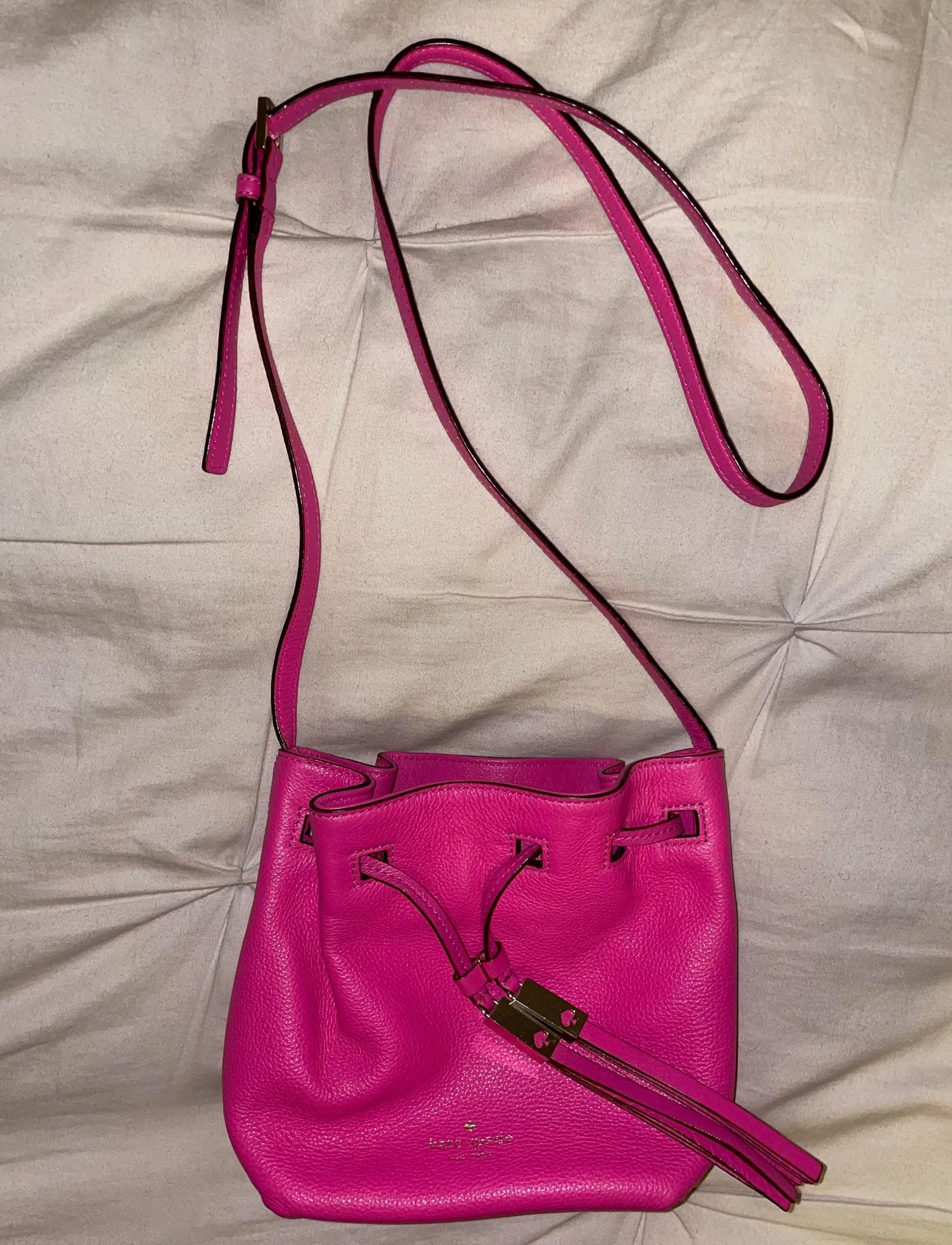 Kate spade bucket bag: Condition: good Style: crossbody Material: leather Color: hot pink This b... Show more