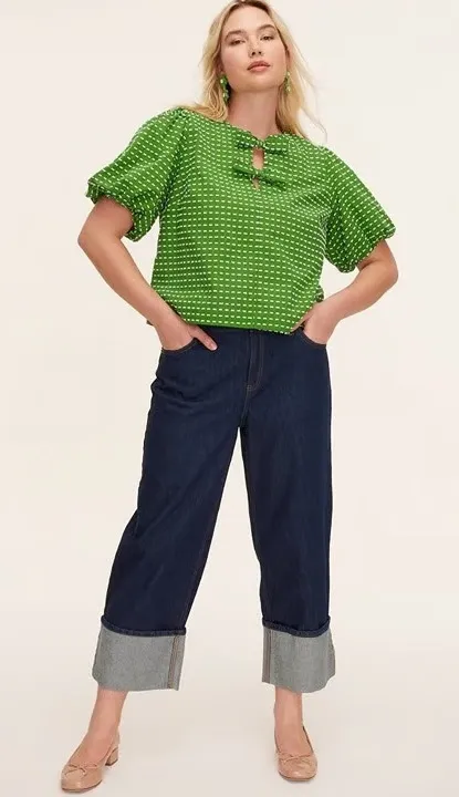 Kate Spade Dark Wash High Rise Straight Leg Wide Cuff Denim Jeans Size 14 Great Condition