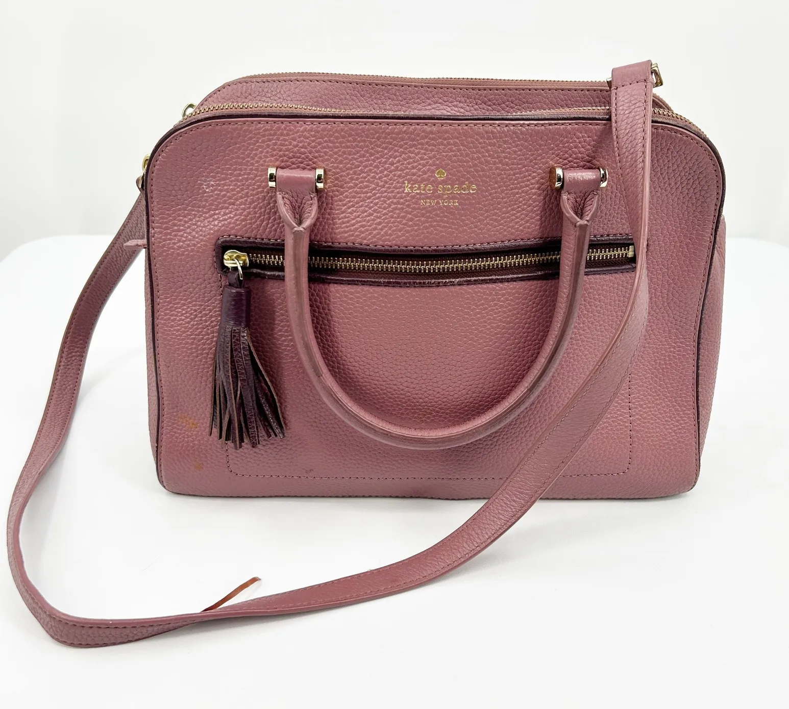 Kate Spade Kalen Chester Street Pebbled Leather Satchel Crossbody Bag Mauve Fair preowned condition... Show more