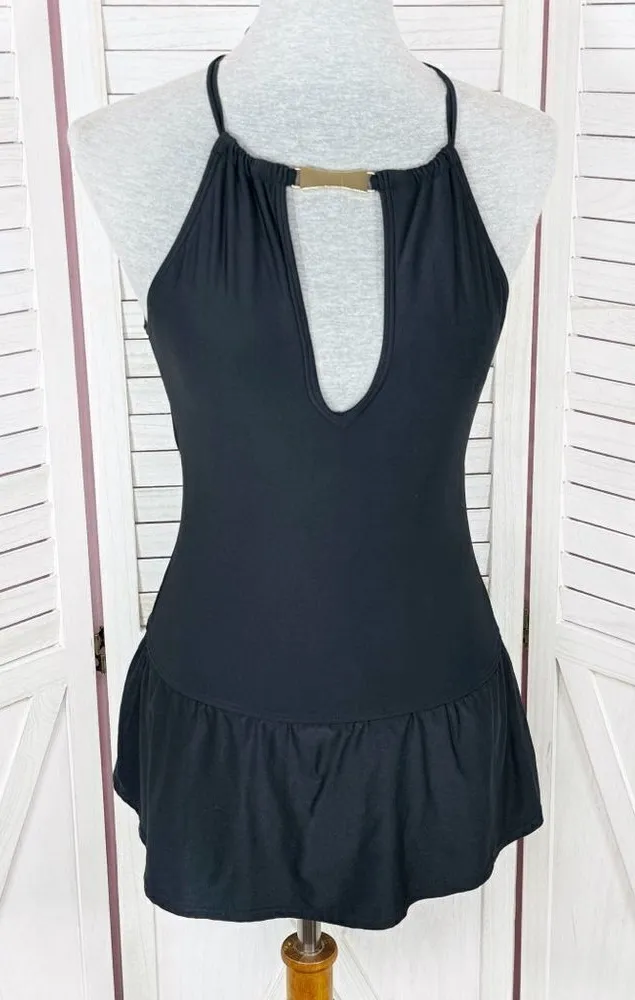 Kate Spade Crescent Bay High Neck Swim Dress Swimsuit Black Size Small Dark jet black Goldtone... Show more