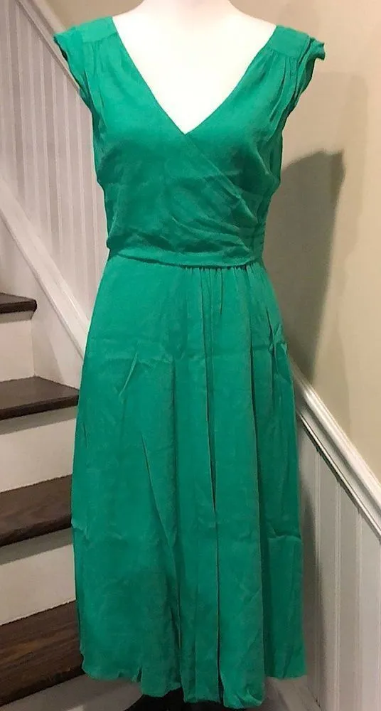 KATE SPADE Jade Green Tea Length Cap Sleeves Empire Crossover Top Dress Sz 4 This Kate Spade Jade... Show more