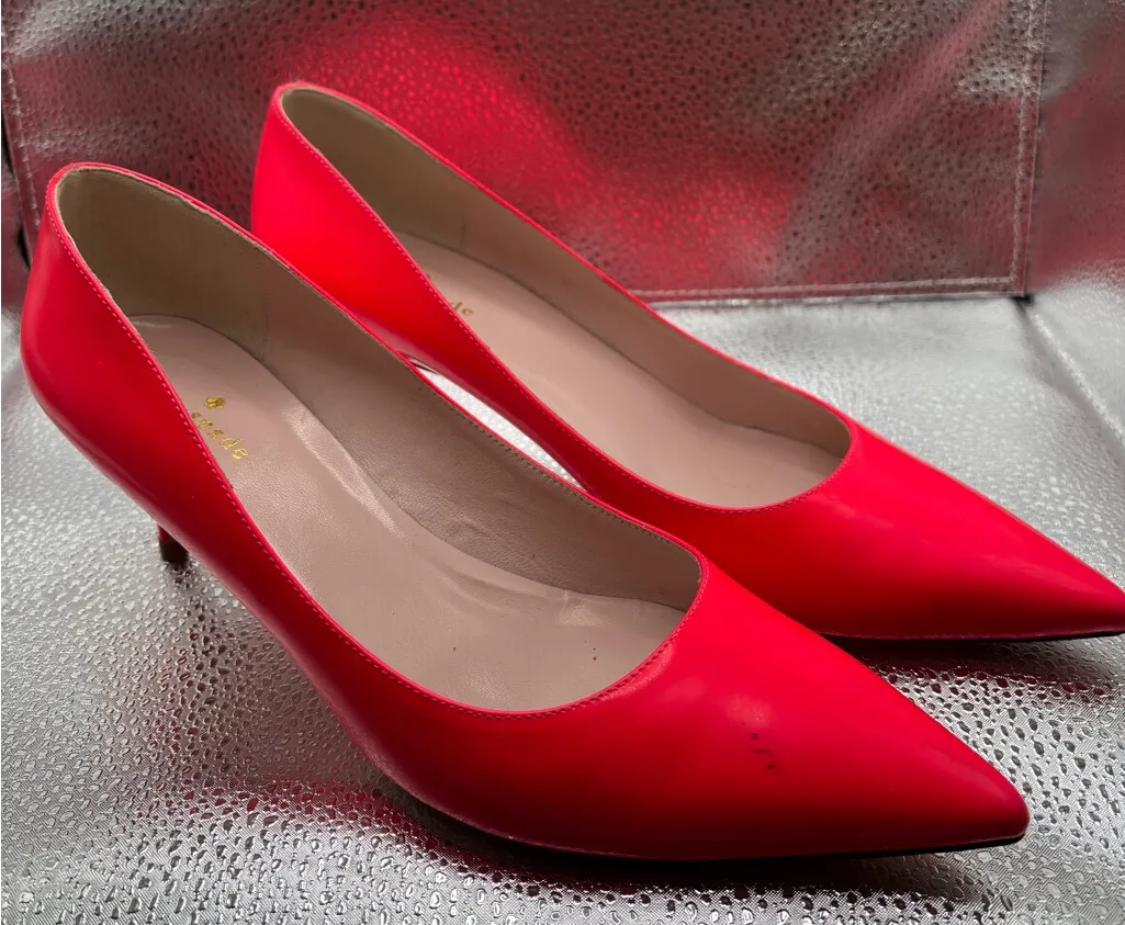 Kate Spade Melanie Bright Neon Pink Kitten Heels Size 8.5 Pumps Patent Leather - $35 - From Ashlee