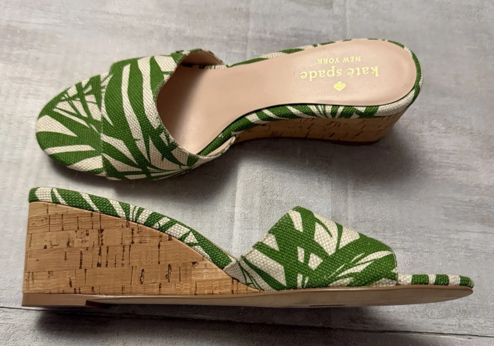 KATE SPADE Mileena Meena Palm Frond Cork Slide Wedge Sandal Shoes 7.5 NWOB Green - $50 - From Shaynie