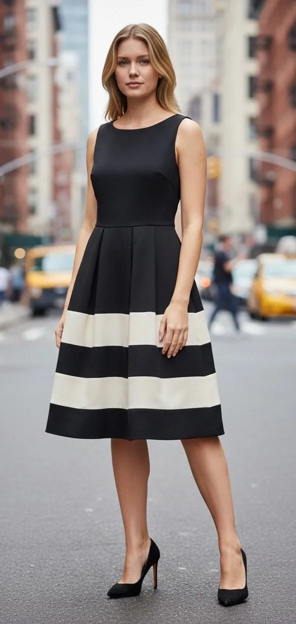 Kate Soade New York Celina dress Sz 10 Black and cream, almost champagne color wide stripe on skirt... Show more