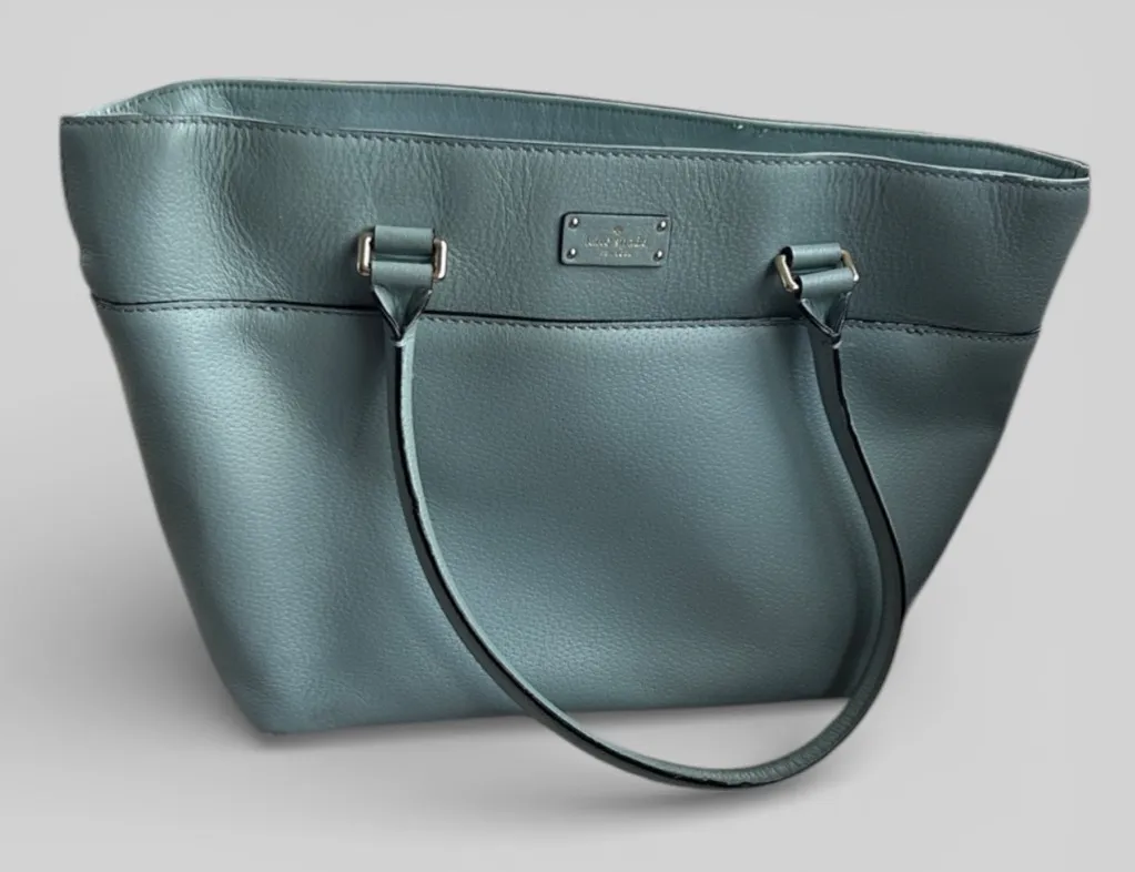 Kate Spade oversized blue or mint green saffron leather tote shoulder bag measures 16“ x 10“ sign... Show more