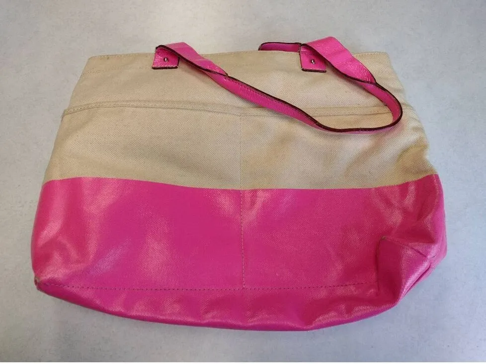 Kate Spade SIZE: 11.7"h x 15.6"w x 4.9"d drop length: 8" woven cotton mistelino with patent cowhid... Show more