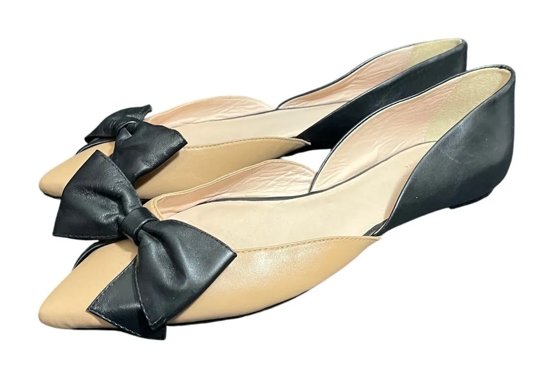 Kate Spade New York Nude Black Bow Pointed Toe Flats‎ Womens Size 9.5 Leather - $69 - From Sophie