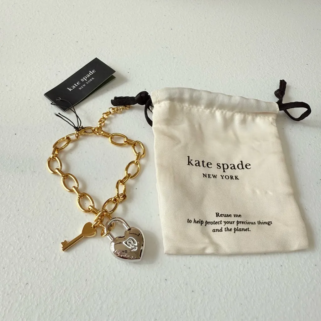Chic NWT Kate Spade heart you adjustable length chain bracelet with gold chain and silver heart char... Show more