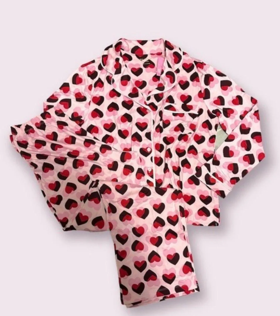 Super cute and soft! Long sleeve pink and red heart set! Only worn a few times!