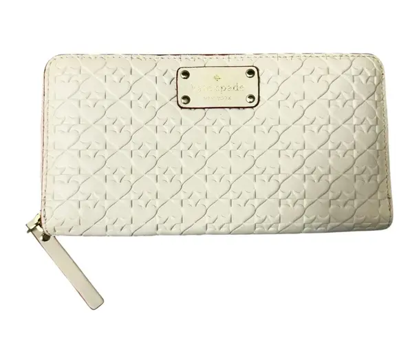 This listing is for a Kate Spade Penn Place Embossed Logo Wallet. Cream. Zip around. Approx 8in x 4i... Show more