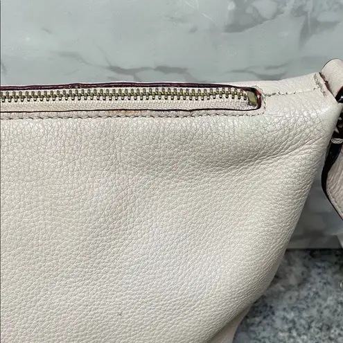 Elegant light beige crossbody bag. Features stylish tassel. Ideal for daily wear.