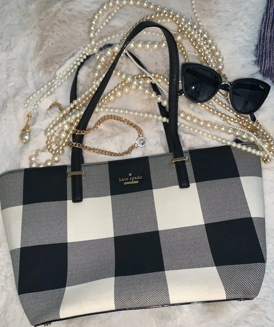 Very cute Kate spade ♠️ plaid purse perfect size for all those must haves, there is a highlighter st... Show more