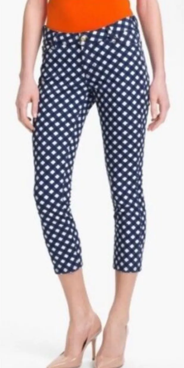 Keywords: Kate Spade Saturday, Skinny Jeans, Ankle Crop, Diamond Print, Blue Jeans, White Jeans, Designer Jeans, Cropped Jeans, Women's Jeans, Patterned Jeans, Contemporary, Stylish, Casual Jeans