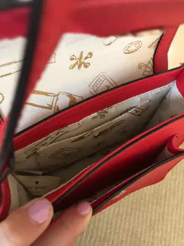 Red, small crossbody with gold hardware, barely used, no stains, almost new condition.