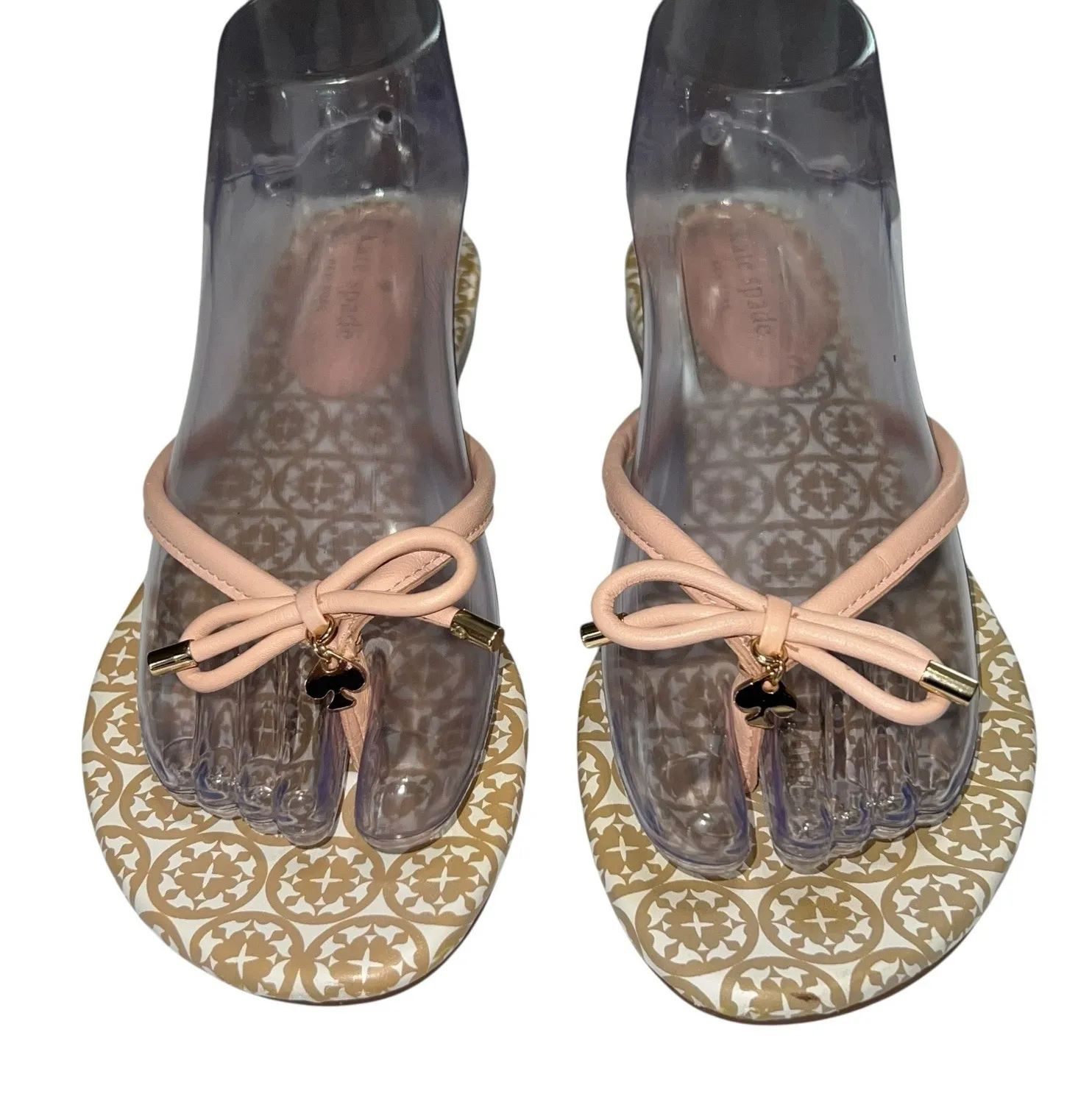 These Kate Spade pale pink and white Mystic Bow thong sandals in size 8.5 are perfect for summer, fa... Show more