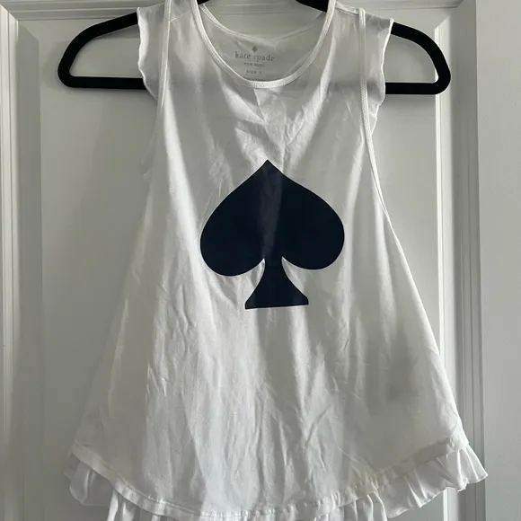 This chic tank top from Kate Spade features a striking navy blue spade symbol on a crisp white backg... Show more