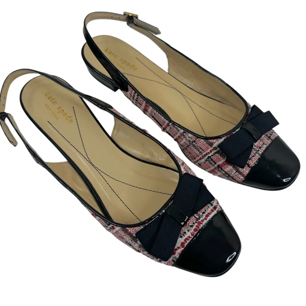 Great condition, light wear Adjustable slingback buckle strap Made in Italy holiday, tartain, tweed