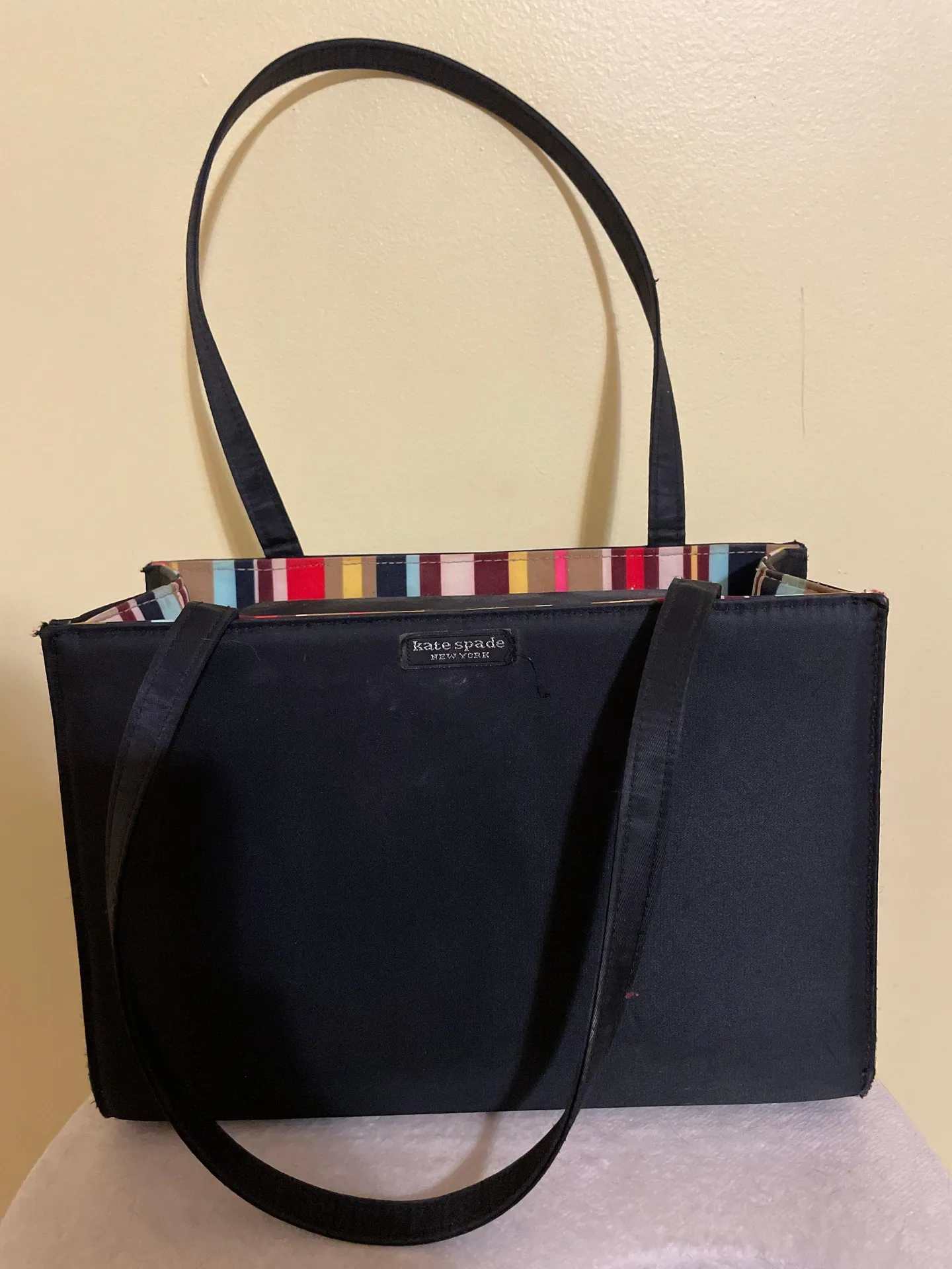 vintage 1990s Kate Spade purse (medium tote style) with colorful inner lining. some natural wear (sh... Show more