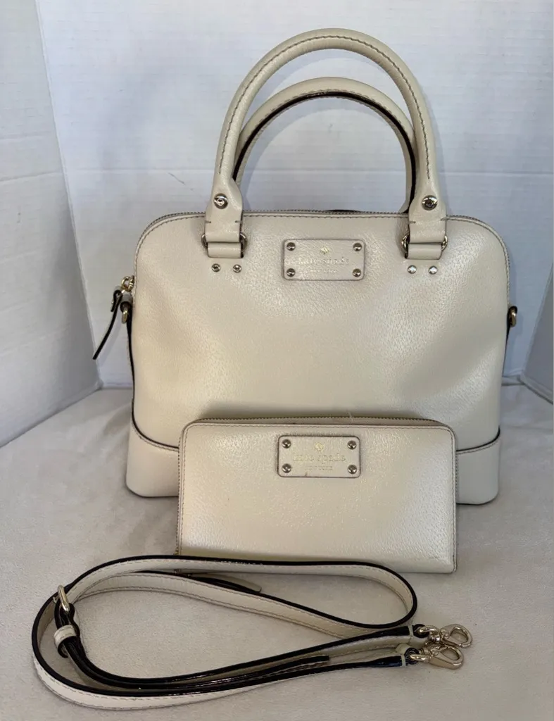 -Great condition, the satchel has a bottom corner exterior stain as shown in photos and the wallet h... Show more