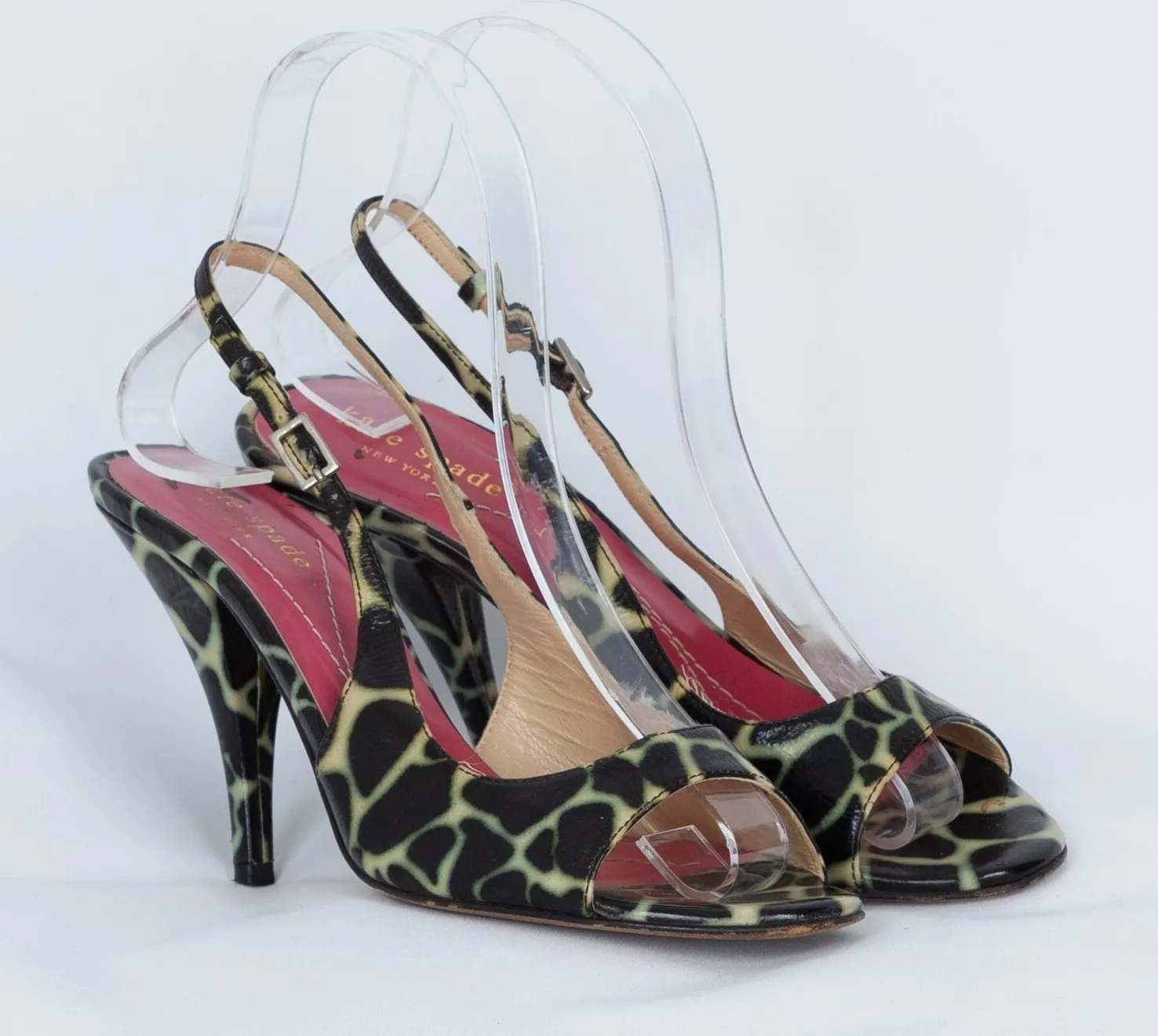 Approximately 4" heel Good pre-owned condition with some wear to footbed and white mark on heel of... Show more