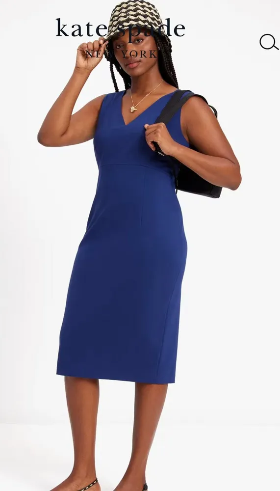 Good pre owned condition no rips or stains. classic sleeveless knee length ponte fabric dress center... Show more