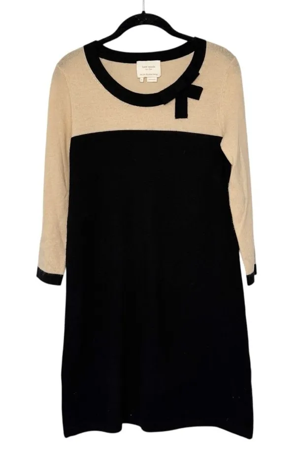 Very good used condition. Kate Spade black beige sweater dress. Wool and cashmere blend. Bow on the... Show more