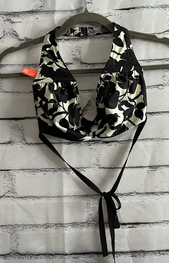 OPEN TO ALL OFFERS Vintage 2003 Model. This Kate Spade New York bikini top from the Balenciaga Road Trip collaboration features a bold black and cream floral print with a structured halter silhouette. Designed to make a statement, this piece combines playful patterning with a flattering plunge neckline and supportive construction. The halter style ties at the neck and back, allowing for an adjustable fit while providing lift and shape. The wide straps and gathered bust detailing create a secure, comfortable feel that works well for both lounging and swimming. The contrast floral print gives it a polished, high-fashion look that stands out from standard swimwear. Made from a smooth stretch fabric blend, this top is fully lined and designed to hold its shape when worn. It pairs easily with solid black or coordinating printed bottoms. ⸻ Item Details • Brand: Kate Spade New York • Collection: Balenciaga Road Trip collaboration • Style: Halter bikini / swim top • Color: Black & cream floral • Size: 36 (tagged 2X) • Neckline: Plunge halter • Closure: Tie-back and neck tie • Fabric: Nylon / elastane blend • Lined: Yes • Made in: USA of imported fabric ⸻ Condition Gently used. No holes, stains, or fabric damage noted. Elastic and ties are intact. Please review photos for overall condition. kate spade bikini top, balenciaga road trip swim, designer floral bikini, halter swim top, black cream bikini, luxury swimwear, resort swim, statement bikini top