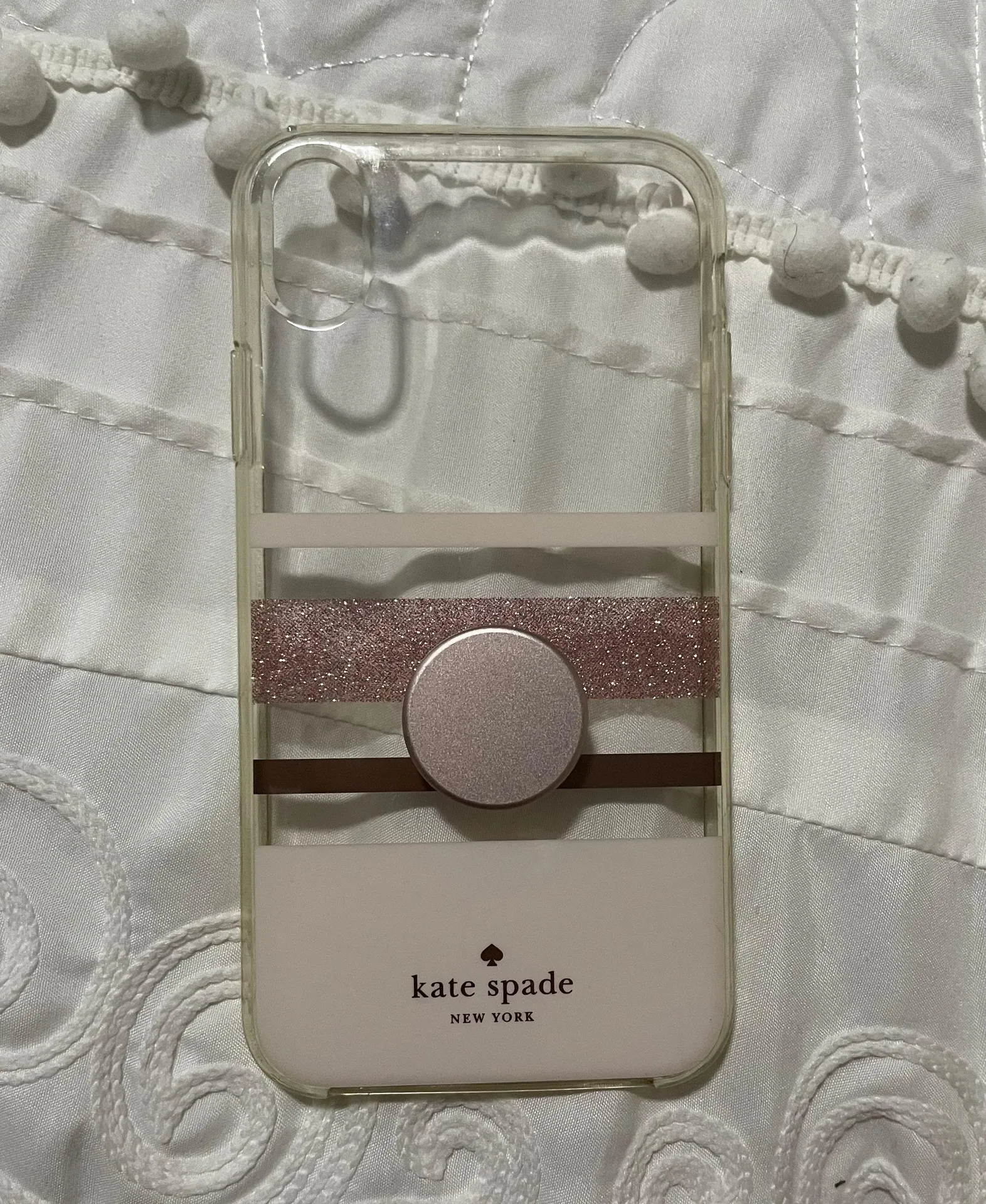 comes with the mini pop socket, you can take it off if you don’t want it!