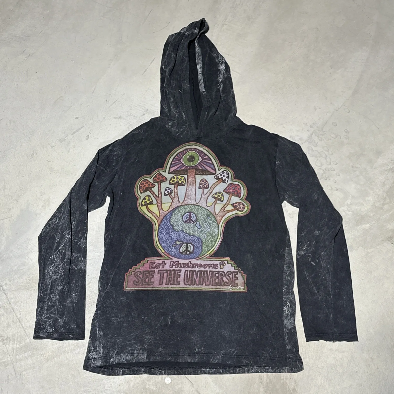Kathmandu Imports Hoodie Unisex SZ L Black Tie Dye Mushroom Pullover Lightweight Size L - $25 - From Molly