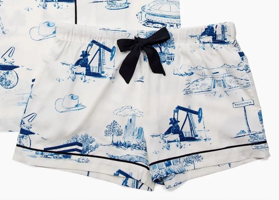 Condition: Pre-loved. Excellent condition with no stains or flaws. Pajama shorts only Size: Large Waist: 18” Inseam: 2.5” Elastic waistband Tie at front Relaxed fit Houston, Texas theme Color: White with blue