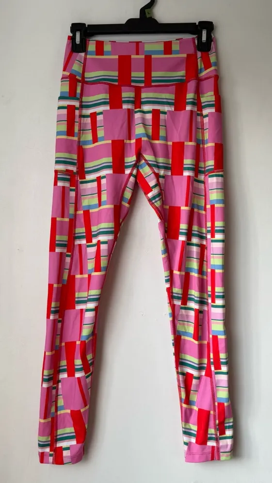. Here are your perfect workout and everything else leggings! Throw on our matching sports bra and go for a run, or throw on a cute top and go shopping! They’re fun and bright and you’re sure to get compliments. Fabric: 75% polyester 25%spandex It is soft, and not see-through even when stretched. FEATURES: - Side pockets to put your keys, phone, credit cards…. - flattering back/butt seam/yoke - No seam on the front waist is 12" across, rise 11", inseam 27"