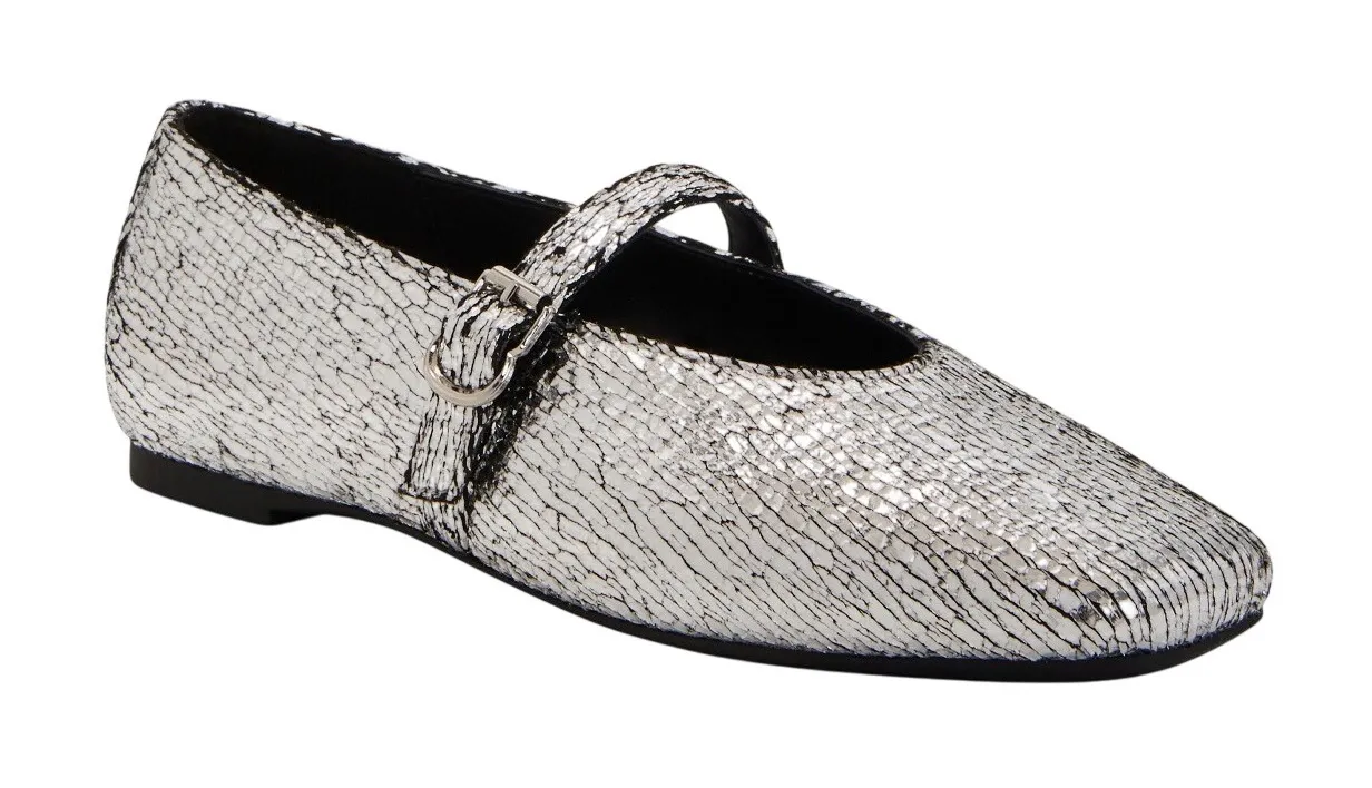 . The classic Mary Jane is reimagined in this metallic version featuring a square toe and memory foa... Show more