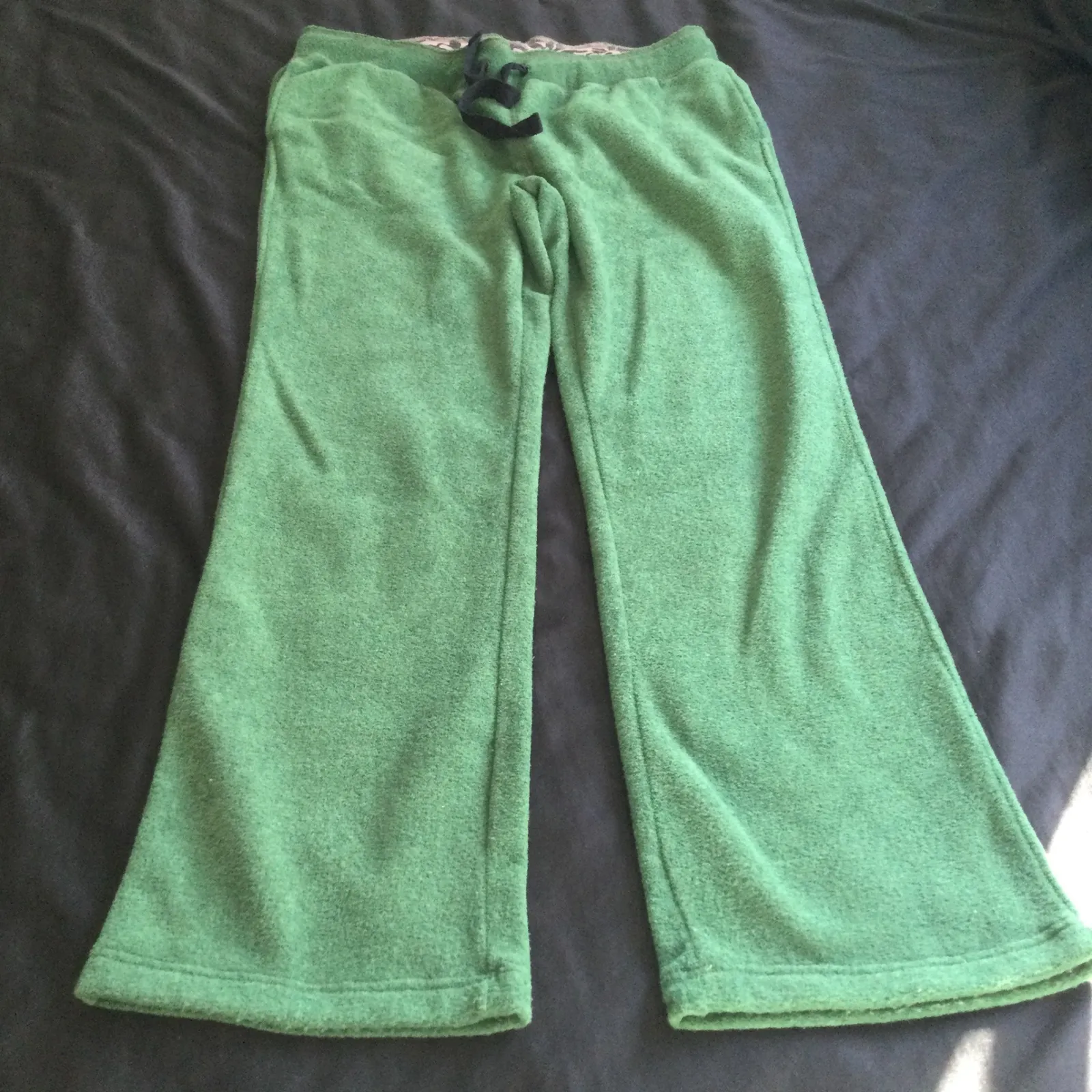 Wrap yourself in ultimate comfort with these KAVU fleece sweatpants. The plush green fabric promises a soft, cozy feel against your skin, perfect for unwinding after a long day or enjoying a relaxed weekend morning. Featuring a comfortable elastic waistband with a drawstring and a convenient back pocket with a stylish accent detail, these pants blend practical design with a laid-back aesthetic. Ideal for lounging at home, casual outings, or weekend getaways. Measurements: • Inseam: 29 in • Waist (unstretched): 16 in • Waist (stretched): 22 in • Rise: 12 in Department: Unisex Adults Style: Sweatpants Type: Pants Performance/Activity: Gym & Training, Walking, Running & Jogging Leg Style: Tapered Features: Elastic Waist, Pockets, Stretch Occasion: Activewear, Casual Material: 100% Polyester Closure: Drawstring Fabric Type: Felt Fit: Relaxed Pattern: Solid Keywords: KAVU sweatpants, fleece pants, women's loungewear, cozy bottoms, comfort fit, athletic pants, casual wear, relaxed fit, outdoor gear, travel pants, winter comfort, everyday wear