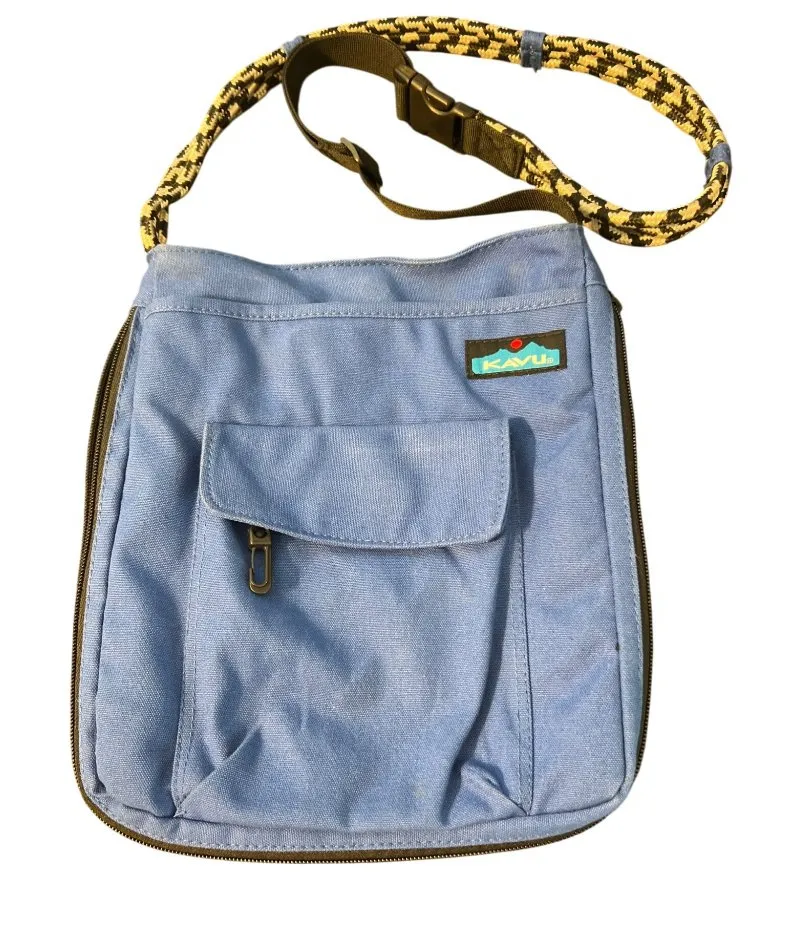 Compact and stylish, the Kavu Keeper Blue Canvas Crossbody Bag is perfect for everyday use. Features a zip-around design to widen the bag, providing extra storage. Ideal for those on the go. • Blue canvas material • Crossbody sling style • Zip-around to widen • Lightweight and durable • Ideal for daily use Measures approx. 11.5" tall, 9.75" wide, 1.25" deep Great preowned condition