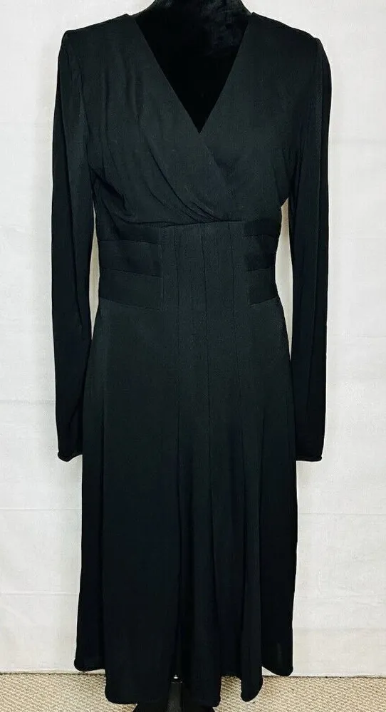 KAY UNGER Black Dress Womens Size 10 Faux Wrap Knee-Length Long Sleeve - $33 - From Elizabeth