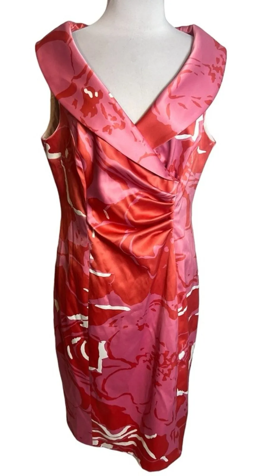 KAY UNGER Floral Satin Shawl Collar Dress Pink Coral Lined Sz 12 - $100 - From Rocked