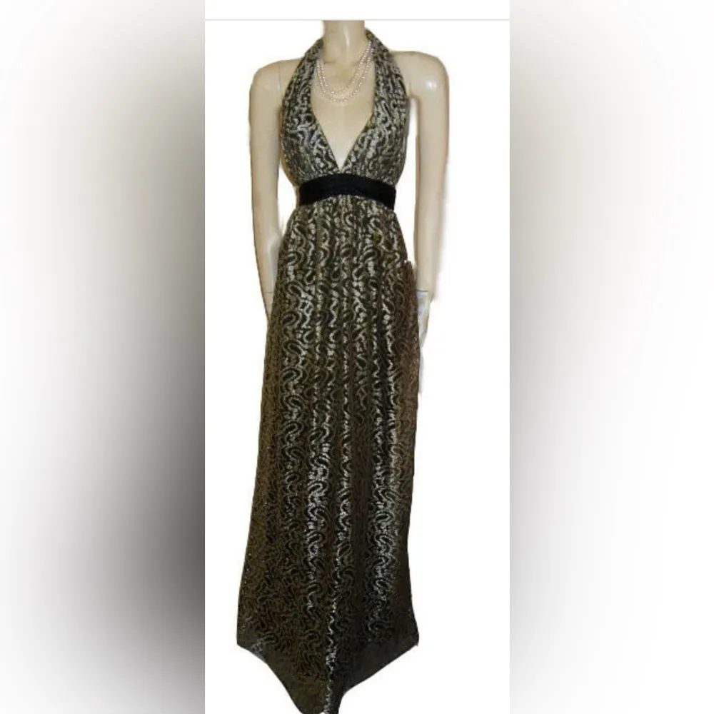 Kay Unger Halter Plunge Neck silk lace Maxi Dress gown Black gold Whimsigoth 6 - $75 - From Miriam