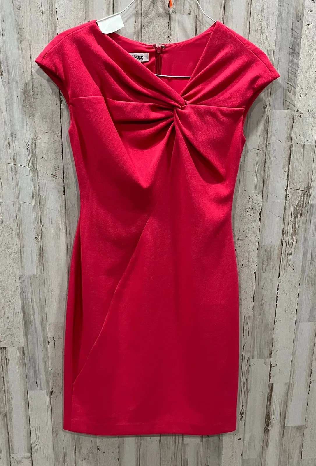 This Kay Unger dress is a beautiful piece that combines retro charm with modern sophistication. The pink ruched design and knee-length cut make it perfect for both business and special occasions. Features: - Brand: Kay Unger - Color: Pink - Style: Sheath Dress - Design: Ruched - Length: Knee Length - Occasion: Business, Cocktail, Party - Size: 4 -Stitching slightly unsewn at slit, see photo