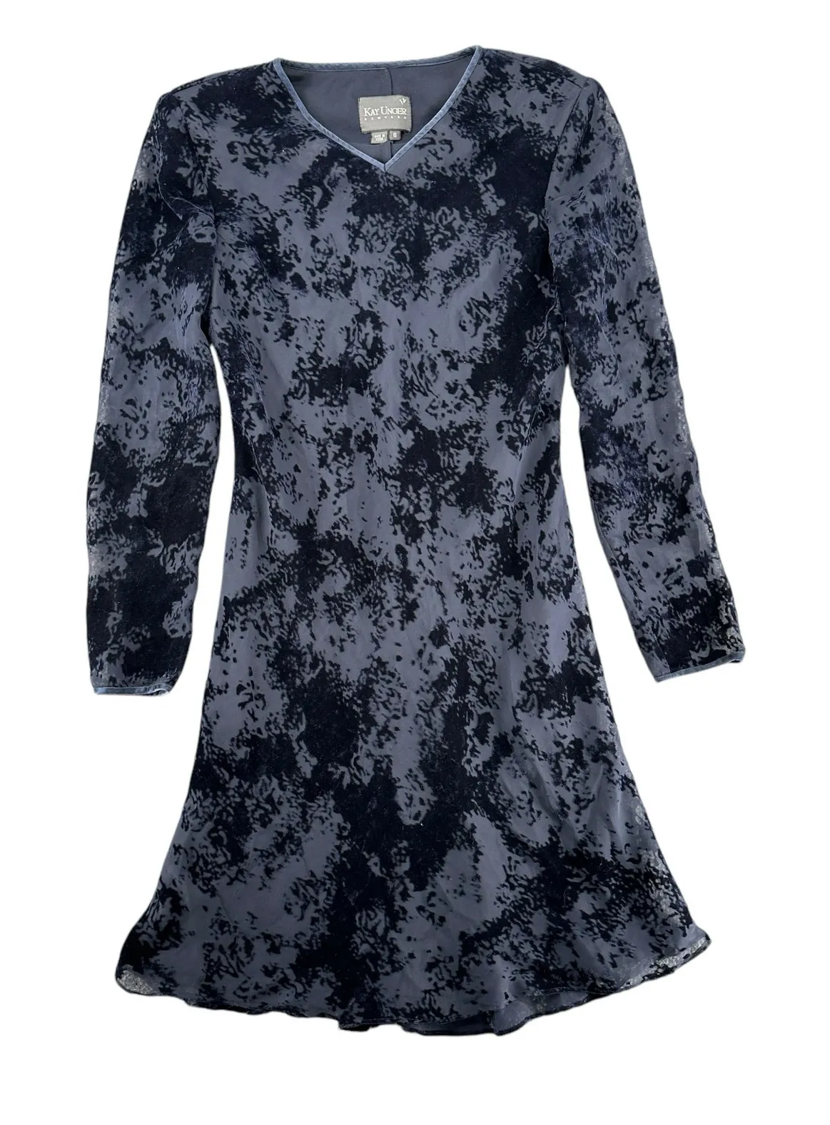 Sheer sleeves fairy grunge satin trim sleeves V-neck, long sleeve, stretchy, 90s grunge retro bodycon fit and flair midi dress Home coming, prom, formal, party, dinner, cocktail dress Goth gothic dark academia Size 6 Medium women's Kay Unger New York Lined Rayon Polyester - 90s light / thin shoulder pads Chest: 37 in Sleeve: 24 in Length: 30 in Stretchy waist pre-owned great condition no flaws