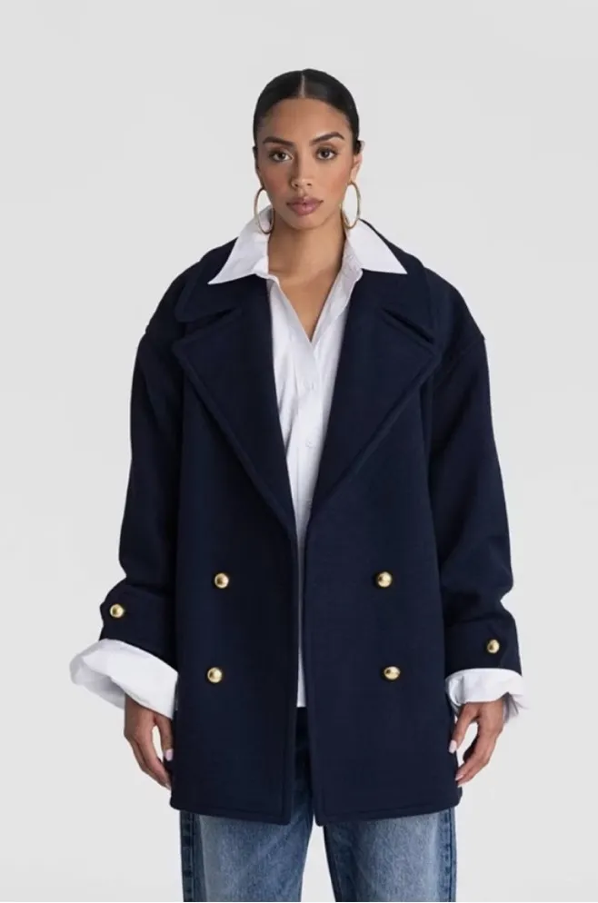 KBB by KAHLANA x Target Women’s Pea Coat – Navy Blue – Size SMALL Elevate your cold-weather wardrobe with this chic KBB by KAHLANA x Target pea coat. Crafted from luxurious melton wool, this classic navy blue coat features a timeless silhouette that’s both polished and versatile. ✨ Details: • Brand: KBB by KAHLANA x Target • Size: Women’s Medium • Color: Navy Blue • Style: Pea Coat • Material: Melton Wool • Double-breasted front with gold-tone buttons • Structured lapel collar • Fully lined for warmth and comfort • New / Never Worn Perfect for work, casual outings, or layering over fall and winter looks. A stylish essential that pairs effortlessly with jeans, trousers, or dresses.