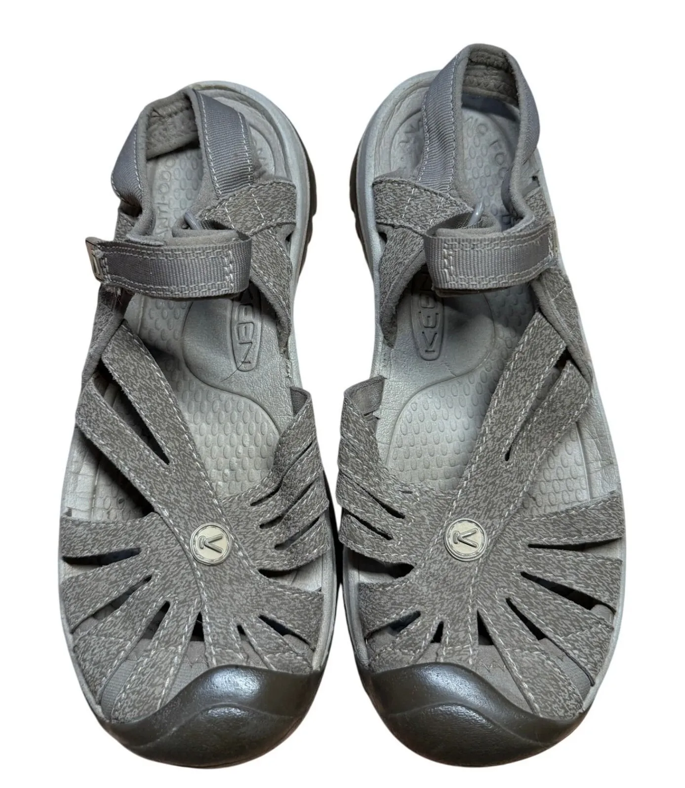 KEEN Rose sandals in brindle shitake, closed toe, size 9. Good Pre-Owned Condition *any flaws will be noted above* ***Please make reasonable offers with the "offer" button (I won't negotiate in comments, no transactions offsite, no trades)**** • All items come from a smoke-free home. • Please compare the measurements to something you already own. Keywords: KEEN sandals, women's outdoor shoes, sport sandals, active footwear, waterproof sandals, hiking sandals, trail sandals, adjustable straps, breathable sandals, traction sole, closed toe sandals, outdoor gear, summer shoes
