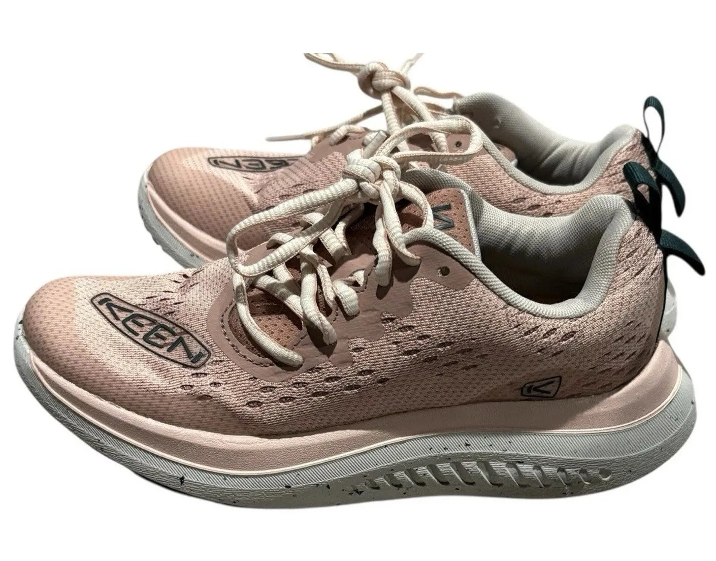 Keen WK400 Walking Shoe (Women) - Fawn/Peach Whip Makes walking feel like rolling. Our women's walking shoe, powered by KEEN.CURVE™ technology. Higher-traction rubber outsole Multi-directional lug pattern provides superior traction KEEN.CURVE provides a constant curve from toe to heel for nonstop propulsion Two-finger webbing loop on the heel for easy pull-on Full-length nylon plate for added stability Eco Anti-Odor for natural odor control Contoured Fit–Follows foot's contours for a more secure fit Performance mesh upper with TPU overlays for durability Offset lacing relieves pressure on top of your foot Breathable mesh lining Removable PU insole for long-lasting comfort Very good condition Retail $160