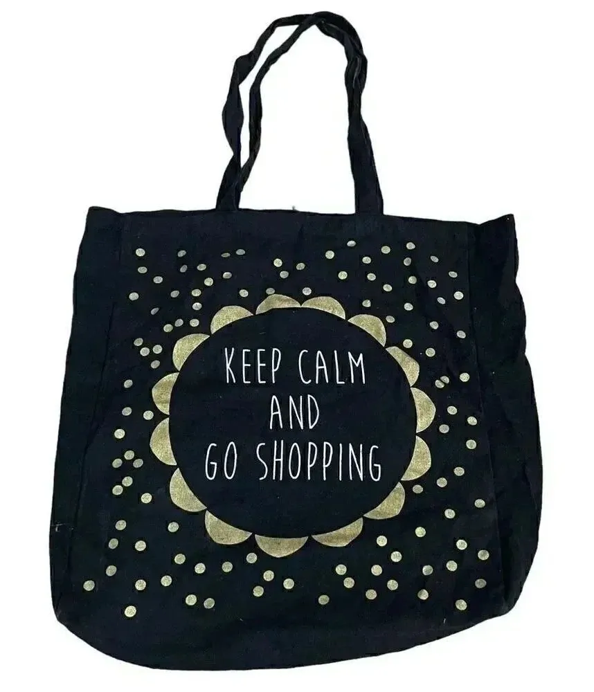 Keep Calm And Go Shopping Graphic Cotton Black Gold Tote Bag One SZ #1115 Excellent preowned conditi... Show more