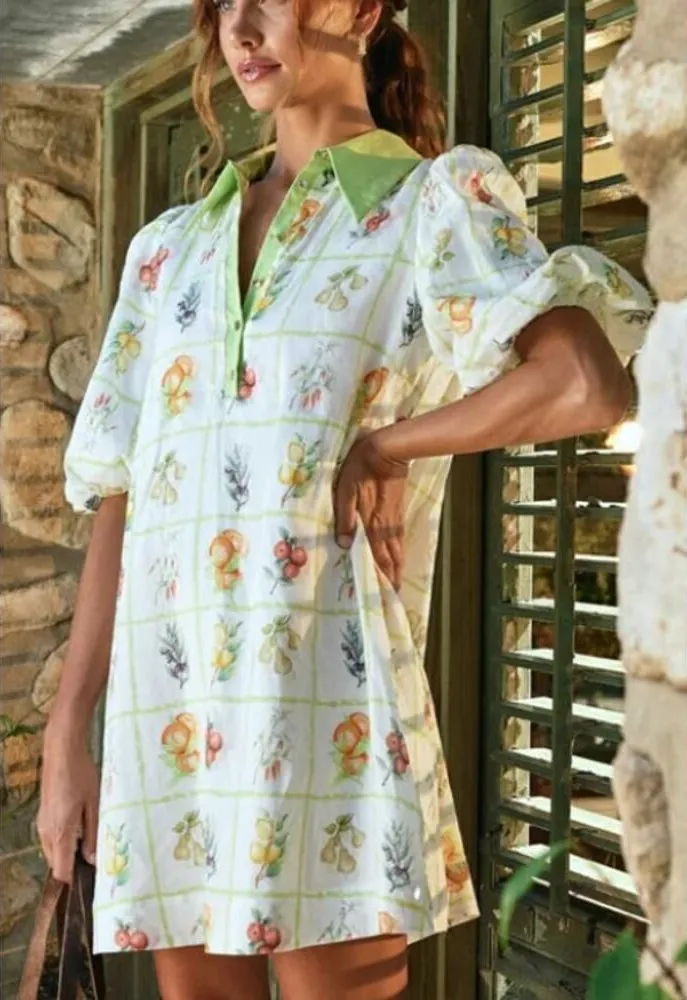 Keepsake Vigneto-Vera Mini Dress Sz. 4 Retail $290 Excellent condition, but NO BELT Measurements Taken: 33"L, 18"p/p (across chest, flat) - Mini Shirt Dress - Shaped collar with collar stand - Functional button up detail at centre front - Collar, placket, and belt are in contrast plain dyed fabric - Chain stitched belt loops at side seams - Voluminous balloon sleeves with encased elastic at hem - Gathers at shoulder seams - MAIN: 100% RAMIE - LINING: 100% COTTON